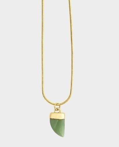 Collar de acero inoxidable con dije de piedra natural con forma de cuerno. Medidas: 40 cm + 5 cm de cadena de alargue aprox